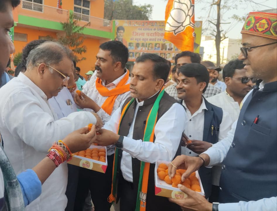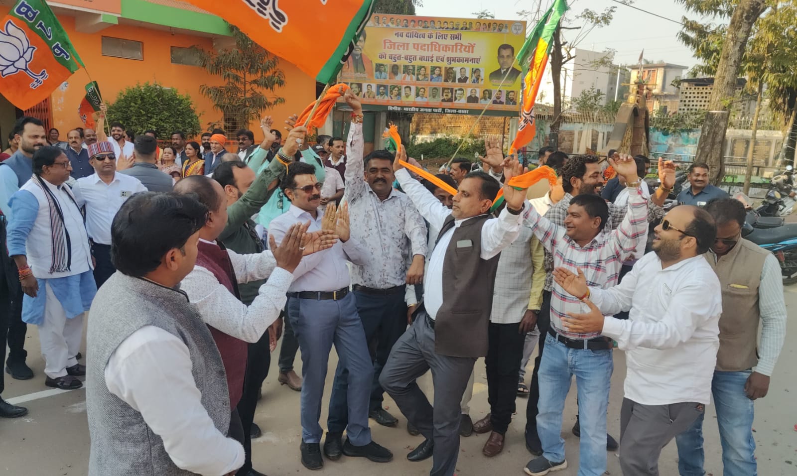 जगदलपुर भाजपा कार्यालय में जोरदार आतिशबाजी व ढोल नगाड़े के साथ मनायी खुशियाँ, बांटी मिठाईयाँ