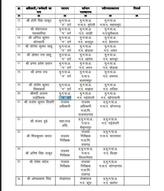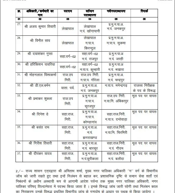 वहीं, 6 सहायक राजस्व अधिकारियों और कुछ जूनियर स्तर के कर्मचारियों, जो अब तक प्रभारी मुख्य नगर पालिका अधिकारी के रूप में कार्यरत थे, उन्हें उनके मूल पद पर वापस भेज दिया गया है।
